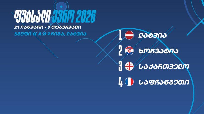 ევრო 2026-ზე საქართველოს ფუტსალის ნაკრების მეტოქეები ცნობილია